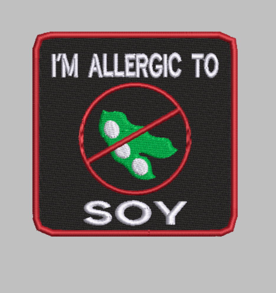 Ensure complete and clear identification of a soy allergy or restriction with our specialized 4-in-1 Soy Allergy Patch Bundle! This set includes four critical embroidery designs, all optimized for the highly efficient In The Hoop (ITH)patch method, allowing you to create a professional, finished 3.5" x 3.5" patch on your machine.